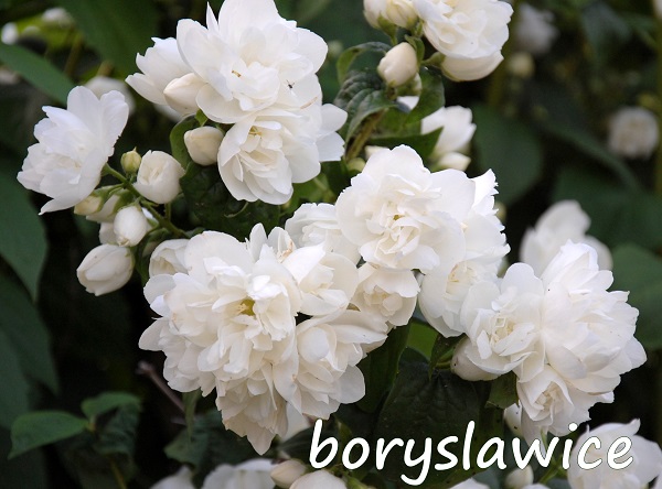 Kwiaty: duże, pełne, śnieżnobiałe kwiaty o średnicy do 5 cm. Kwitnienie rozpoczyna się w czerwcu i trwa do lipca, obsypując koronę licznymi, pachnącymi kwiatami, które wnoszą romantyczny klimat do każdego ogrodu.